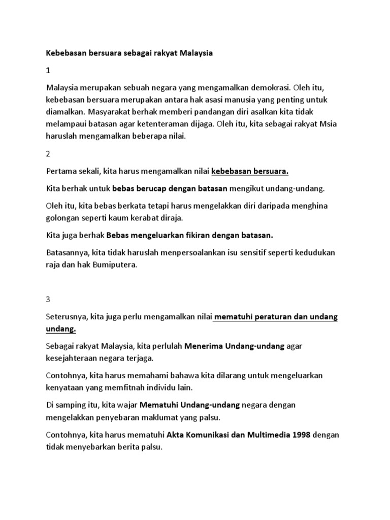 1 topik 30 kebebasan bersuara definisi nilai kebebasan berucap dan mengeluarkan fikiran dengan batasan tertentu bagi menjaga keselamatan dan ketenteraman kata kunci bebas berucap dan beri idea jaga keselamatan dan ketenteraman. Pertimbangan dan tindakan yang dibuat harus tidak. Power, tends to corrupt—tidak terkecuali bagi kebebasan yang tiada mengenal batasan (hanya kebebasan yang mengenal batasan yang disebut. Setelah tekanan, bahagian ini dikeluarkan dari mediapart. Bagi menjaga keharmonian negara, gunakan hak anda dengan lebih bertangungjawab.