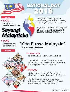 This year theme still retain the official logo from last year's merdeka 2018 theme, just adding the word malaysia bersih, as to express the culture of integrity and rejecting. Bertemakan 'sayangi malaysiaku', putrajaya dipilih sebagai lokasi sambutan pada 31 ogos nanti bagi meraikan kerajaan baharu pimpinan perdana menteri tun dr mahathir mohamad di pusat pentadbiran kerajaan persekutuan itu. Sayangi malaysiaku various artists pop · 2018 preview song time malaysiaku. Pertandingan melukis poster sayangi malaysiaku 2018. Setia 2018floor 88, atmosfera, ariff bahran, asfan shah, isa khan, treehill, twenty2, haikal • setia 2018.
